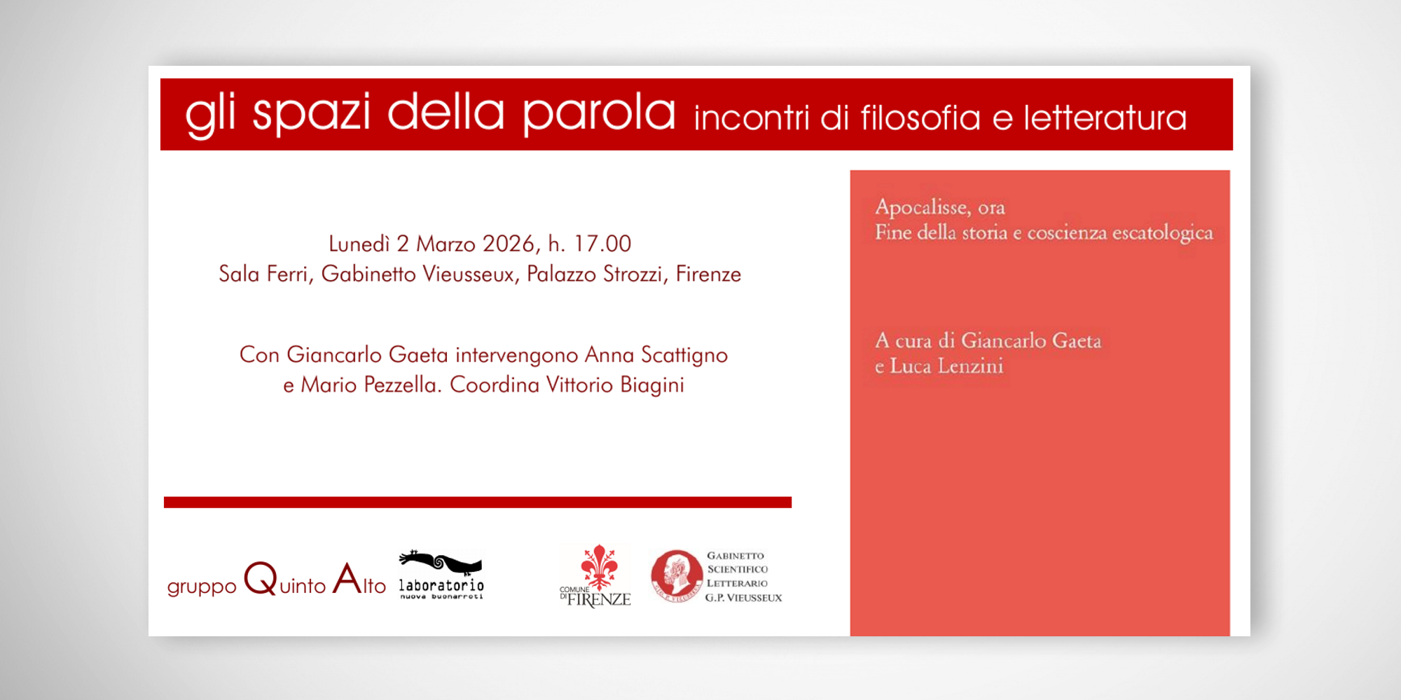 presso la Sala Ferri del Gabinetto Vieusseux, Palazzo Strozzi, Firenze